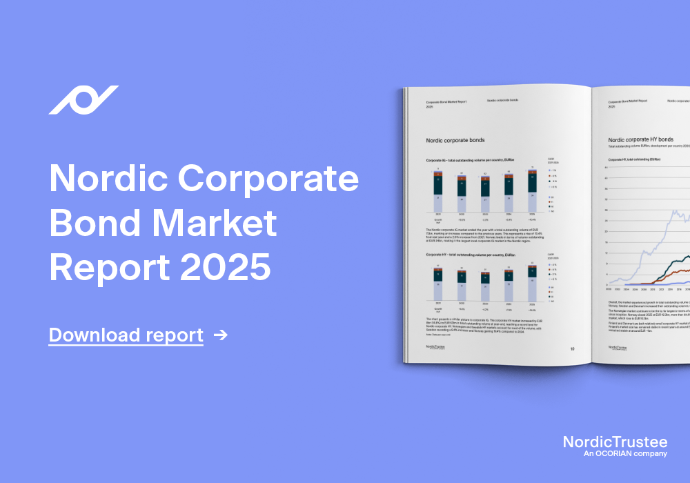 This report presents key developments in the Nordic corporate bond market, based on aggregated statistics from Nordic Trustee, Stamdata and Nordic Bond Pricing. It highlights findings derived from the data, without interpreting or speculating on underlying drivers.